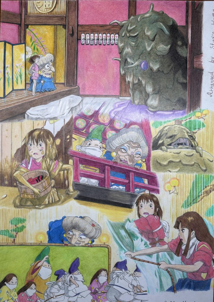 This scene seemed like it would be difficult to draw, and I thought about giving up, but I thought that if I stopped here, there would be no point in drawing Spirited Away, so I decided to continue.